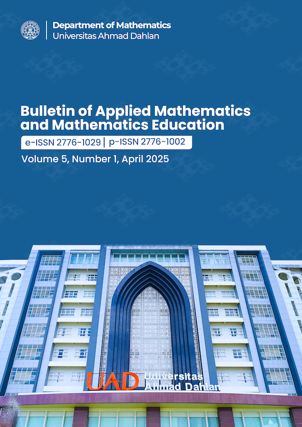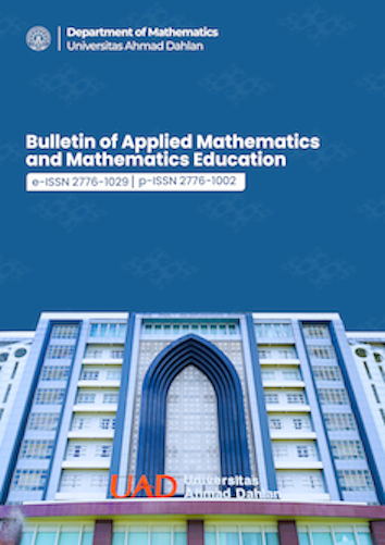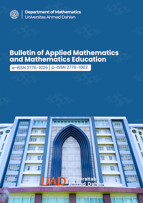 Bulletin of Applied Mathematics and Mathematics Education (e-ISSN 2776-1029, p-ISSN 2776-1002) is a peer-refereed open access international journal which invites mathematicians and mathematics educators to disseminate their theoretical and practical research in the field of applied mathematics and mathematics education. It publishes twice in a year, in April and October. The journal accepts original articles written in English which have not been published and not under consideration to be published in another journal or proceedings. All submitted articles which meet these criteria will be double-blind reviewed by at least two international reviewers before the editor(s) decided to accept or to reject them. We are looking forward to see your contribution in the journal.