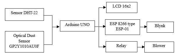 The overall system block diagram is made to facilitate the design and fabrication of tools on existing devices. Below is a block diagram of the Prototype Design of the Air Quality Control Blower at PT SINAR INDOGREEN KENCANA Production Area. As shown in Figure 1.