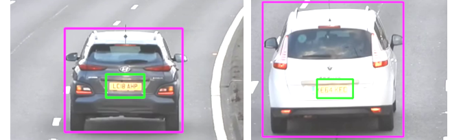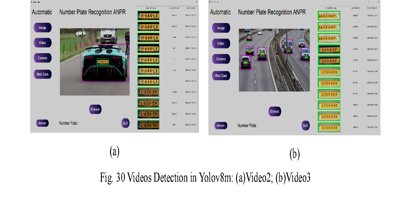 Following vehicle detection, TensorFlow with SSD-MobileNet-v2 models also extract license plates from detected automobiles. These models use deep learning approaches to reliably detect and localize license plates within video frames, as seen in Figure 6.