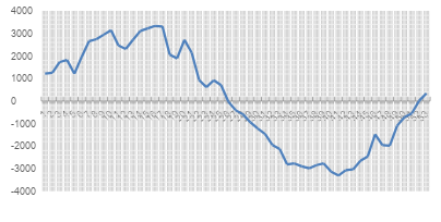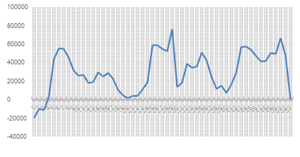 Figure 2 shows the differences between manually estimated production and actual production data (X axis the week of the year and Y axis the difference between the estimate and the actual production). A significant improvement was observed, going from peaks in Figure 2 of more than seventy-five tons to not reaching four tons as a maximum in the differences between estimates on Figure 3.