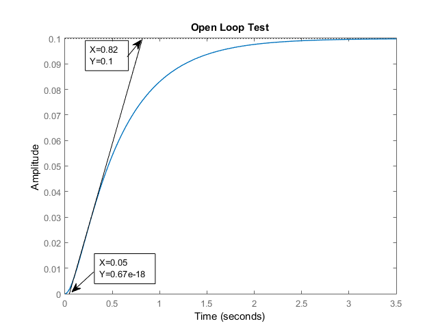 PID parameters are derived using the Ziegler-Nichols method based on the system’s step response in open-loop conditions. This method involves applying a step input to the DC motor system and observing the output to derive the necessary PID parameters. First, apply a step input then record the DC motor’s output response over time. The open response of the DC motor is shown in Figure 4.