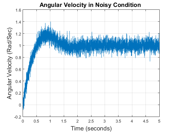 for measurement noise. The error is assumed to be Additive White Gaussian Noise (AWGN). The control system implemented does not yet involve the Kalman filter. The influence of process noise and measurement noise on DC motors will be discussed in this scenario. The step response of the DC motor control system can be seen in Figure 6.