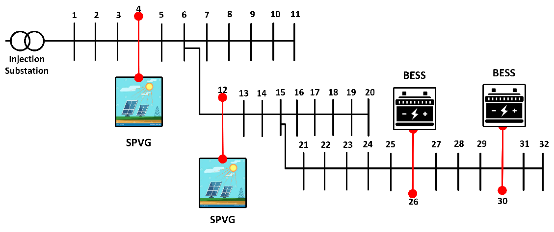 Figure 5. IEE 33-bus with RES integration