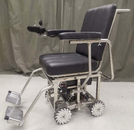 The growing global demographic of older citizens and those with mobility problems has resulted in heightened interest in assistive technologies, particularly powered wheelchairs. Although conventional electric wheelchairs provide autonomy, they frequently encounter difficulties maneuvering in restricted inside spaces due to their limited mobility. Mecanum wheels, facilitating omnidirectional movement via angled rollers, have arisen as a solution to this challenge, improving maneuverability in clinical, residential, and hospital environments [1]–[3]. The intricate kinematics and interrelated dynamics of Mecanum-wheel systems present considerable control issues that require sophisticated and adaptive control solutions [4][5].