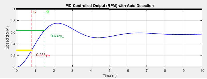 signifies the time when it reaches 63.2% of the steady-state value 𝑦𝑠𝑠. The following points are utilized to calculate the system time constant
