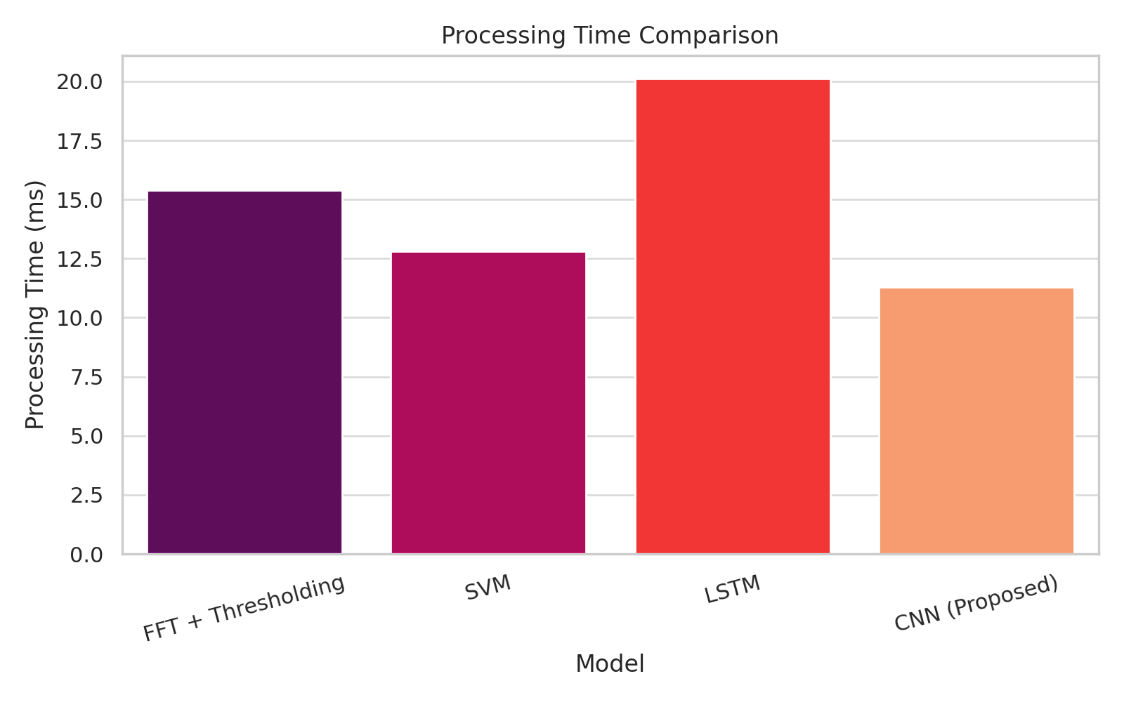 Figure 3. Comparison: Real-Time Performance: Latency of FFT, SVM, LSTM, and Proposed CNN