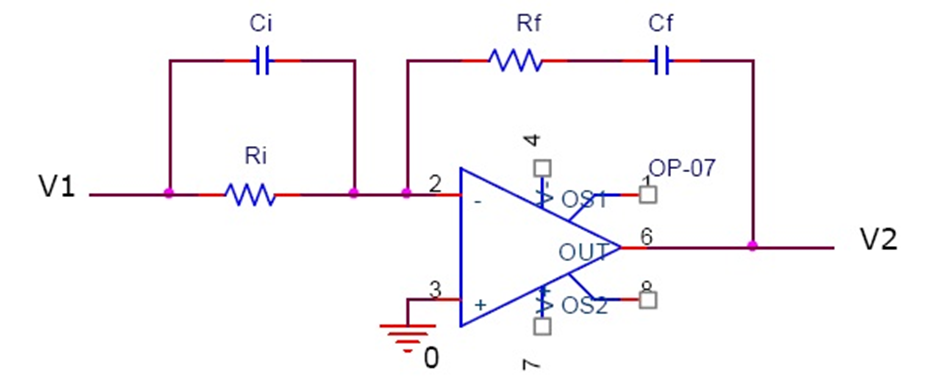 Therefore, using PID control can enhance the system's performance by adjusting the actual temperature and maintaining it at the desired set point. The press machine is integrated with PID control, and its gains are tuned automatically. We do our best to find the method used for tuning the PID control gains on this press machine, but the information about this issue in the machine's catalogue is missing. However, the method used for gain tuning is the Ziegler-Nichols method, which is the most famous one. Table 1 indicates the function of the PID controller Gains used in this study. The electronic circuit of PID control can be presented by an operational amplifier (op amp), as in Figure 2.