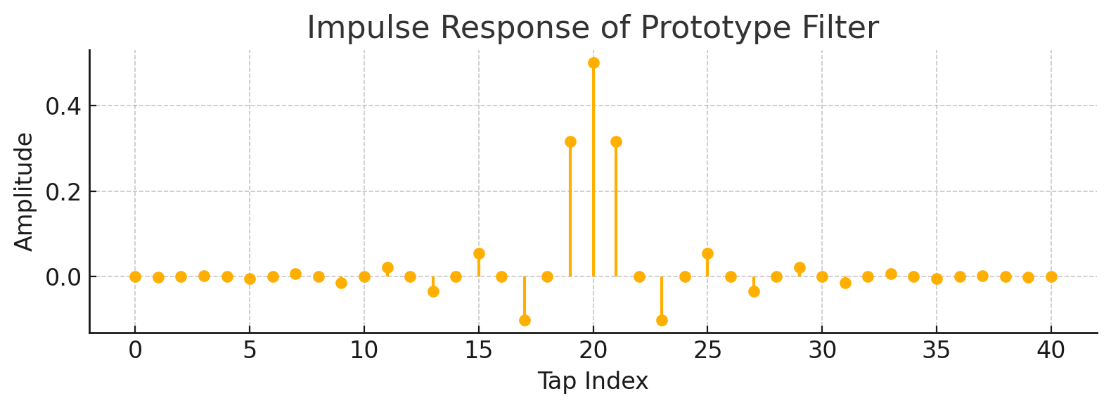 Figure 13. Impulse response of the prototype filter used in FBMC transmission