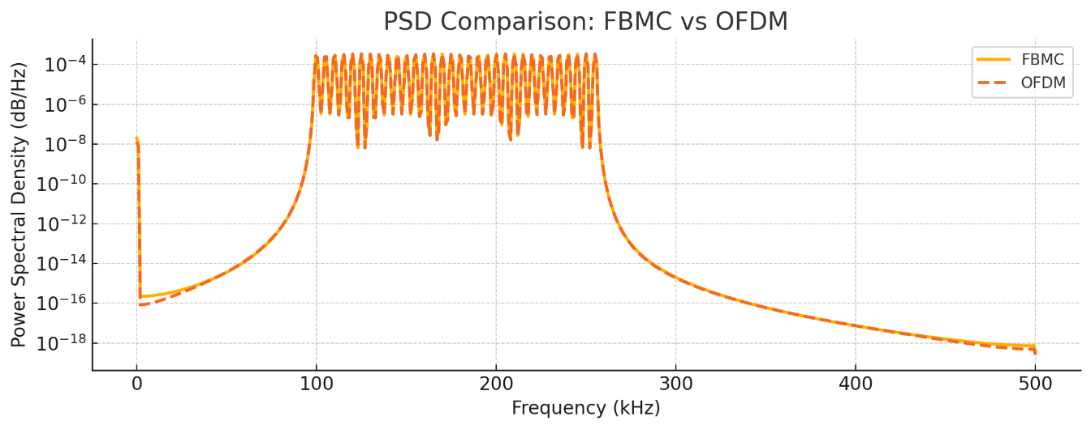 Figure 16. PSD Comparison: FBMC vs OFDM