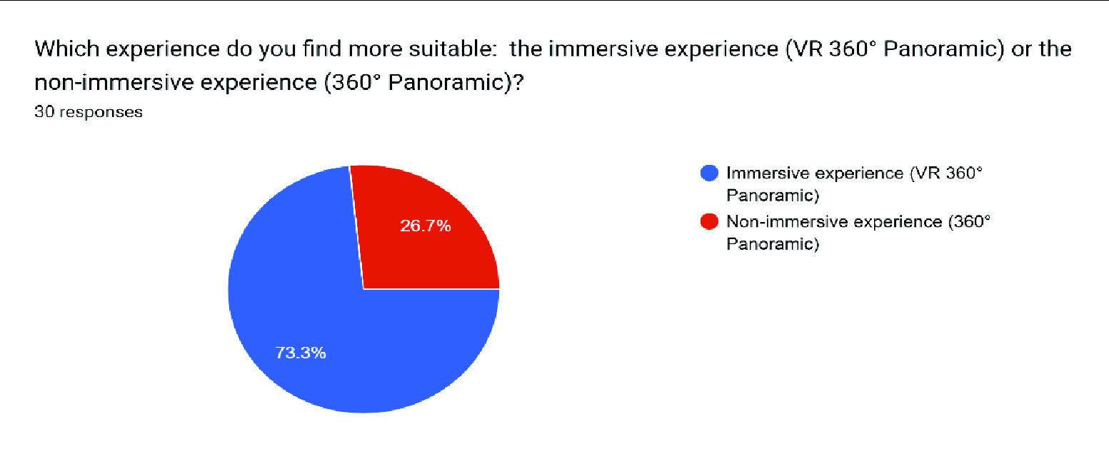 I found the 360° panoramic and VR interfaces well integrated and intuitive. | Efficiency | 30 | 3 | 5 | 4.60 | 0.56 |