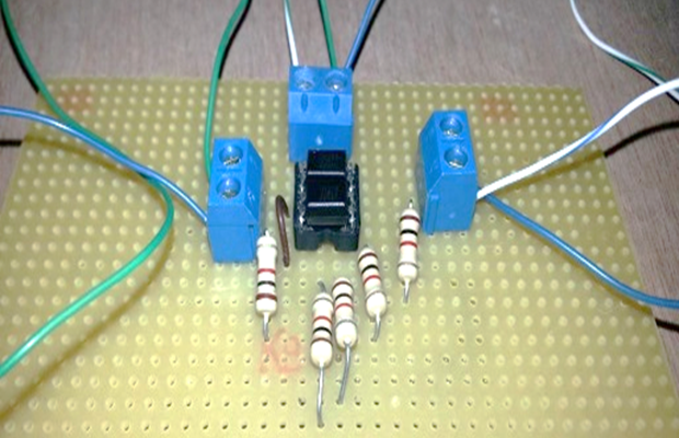This module is used as the input for the phase detector module, supplying it with a regulated constant voltage of 5V to protect the AD8302 integrated circuit against voltage fluctuations, especially over-voltages. The optical isolation module consists of two PC817 optocouplers with appropriate resistors, as shown in Figure 6. The PC817 is a single-chip package that includes a phototransistor and a LED. The LED generates infrared light when an electrical signal is applied to it, and the phototransistor absorbs this light to produce a 5V electrical output. This provides good protection for sensitive integrated circuits from noise or overvoltage by electrically isolating the inputs and outputs [43]-[45].