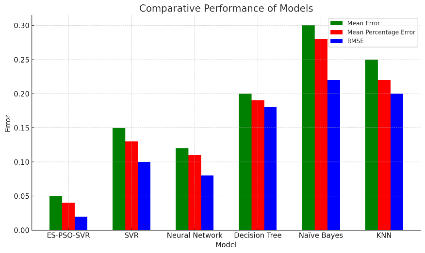 Figure 3. Comparative performance of ES-PSO-SVR and traditional models