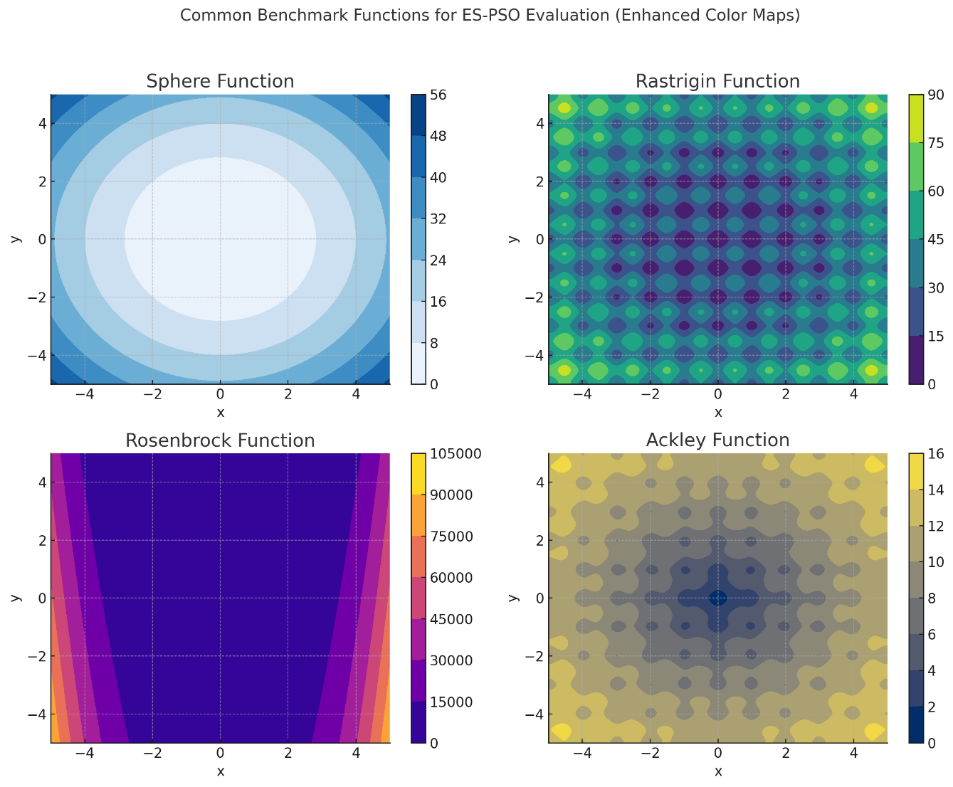 Figure 8. Benchmark functions commonly used for ES-PSO evaluation