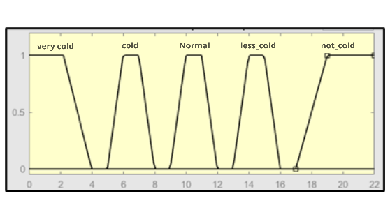 ). The coefficients α and β determine how sensitively the membership functions shift in response to variations in the system. This mechanism allows the controller to maintain stability and energy efficiency under fluctuating solar power and cooling load conditions. In Figure 3 Output variable: Current charging speed (A) consists of the categories Very Slow (SL), Slow (L), Normal (N), Fast (C), and Very Fast (SC). This variable regulates the distribution of energy from the solar power plant to the cooling system, allowing the cold storage to maintain a stable temperature even when energy supply conditions change. Inferences regarding artificial heater settings are presented in Table 2.