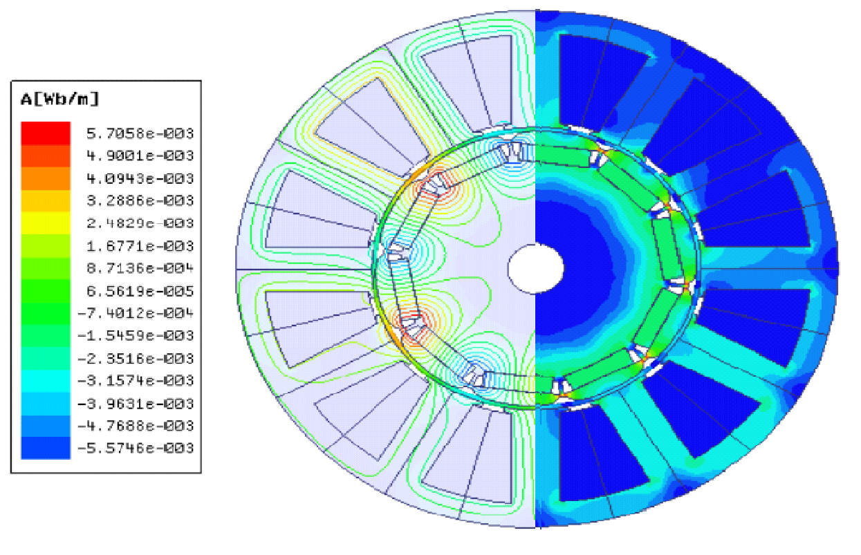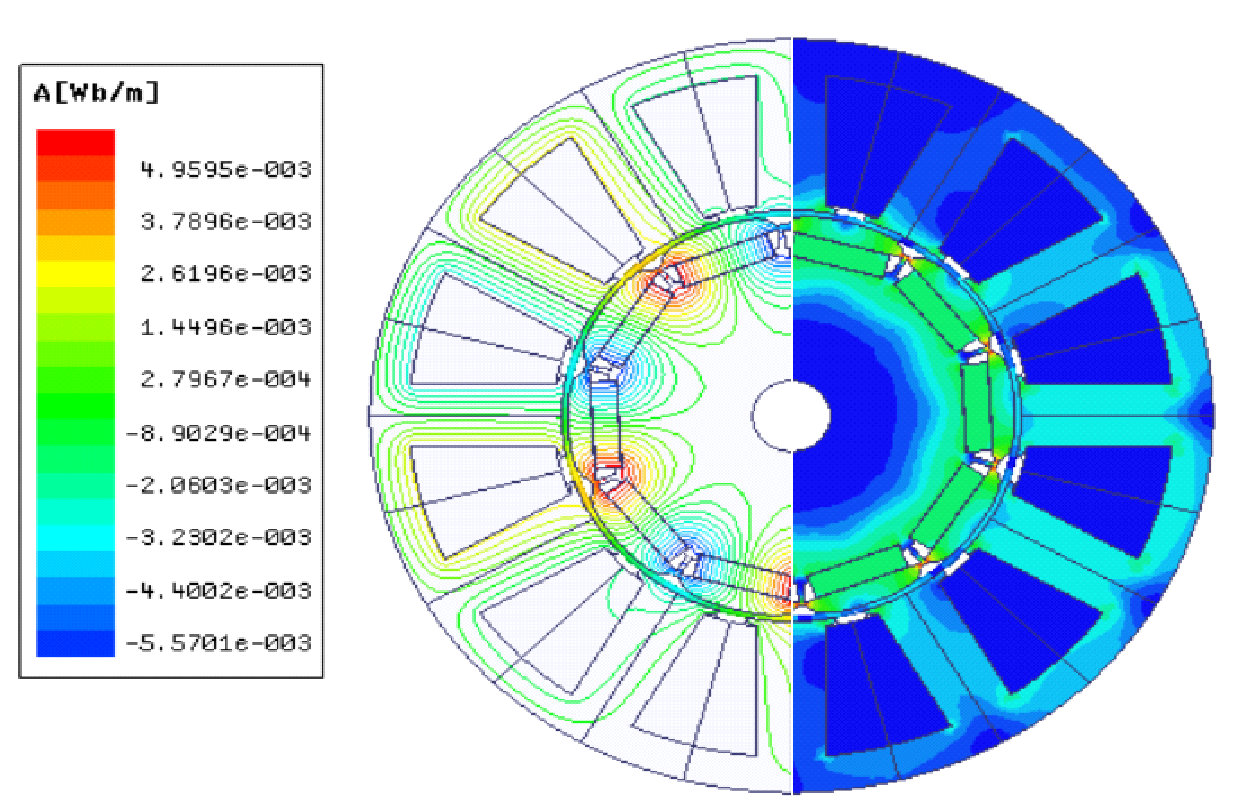 Figure 5. Flux lines and flux density patterns of the understudying machines