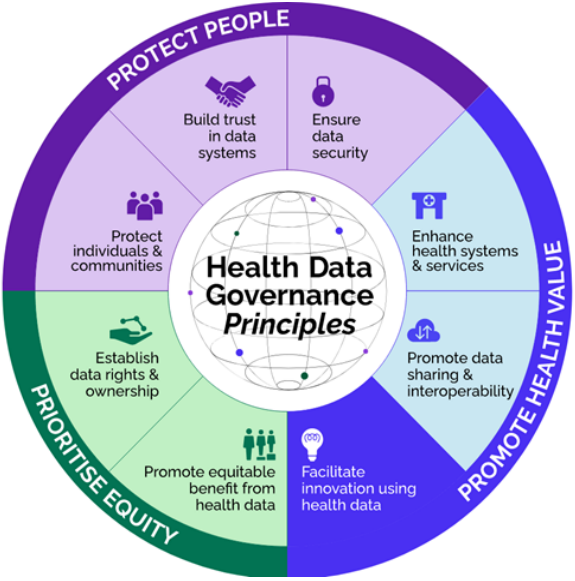 In Kenya, several laws provide for the application of digital technologies in the health care system. These laws and policies concerning mHealth are therefore informed by the Legislative Guide on Digital Health Technologies and Data in Kenya. This guide could be better summed up based on the diagrammatic in Figure 3. The Data Governance on Health Principles Diagram above is as presented in the Legislative Guide on Digital Health Technologies and Data Protection of Kenya, it provides a general framework and guide for enabling responsible, equitable and secure data use in health data ecosystems. It outlines three high-level goals: Protect People, Promote Health Value and Priorities Equity, which are the foundation of the governance principles. Under the Protect People pillar, the framework encourages public trust in data systems, committing to secure data systems, as well as protecting individuals and communities. The Promote Health Value principle is framed around building health systems and services, encourages data sharing and interoperability, and increases innovation through the use of data for a benefit. The Priorities Equity pillar charges equity in rights, ownership, and equitable benefits of health data, fair participation across populations, and so forth. Each of the Health Data Wayfinding Principles supports a rights-based and inclusive approach to digital health governance in Kenya, while balancing innovation with privacy, accountability, and social justice. Hence, this guide serves as support and a booster to legislation as it concerns digital technology application in mHealth. Concerning this, some of these laws will be examined as follows.