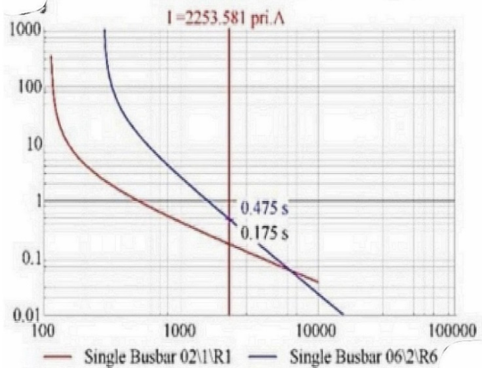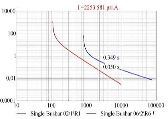 Figure 10. Coordination diagram of main relay 1 and backup relay 6 in base configuration with adaptive protection settings