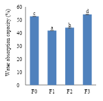Figure 4. Water absorption capacity of KBB flakes. Different notations indicate a significant difference at α=5%.