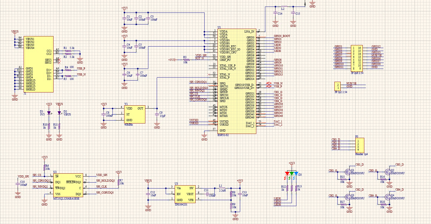 The central control board is a critical component of the system, ensuring accurate, flexible information display and remote-control capabilities. In this design, the central control board is based on the ESP32, integrated with the Jetson nano and HD-A4L card to display content on the LED display. The functions of the central control board include: capable of connecting to Wi-Fi or 4G networks, allowing data reception and control of LED display content via remote interfaces such as computers or mobile applications; acquiring and processing input sensor signals; communicating with the Jetson nano; outputting control signals to the LED screen; and enabling automatic real-time information display and updates on the LED. The controller design must ensure stability, scalability, and performance optimization for the system to operate effectively under practical usage conditions. The combination of hardware components – the ESP32-based on central control board, Jesson nano, HD A4L card, and LED display panels – allows for simultaneous fulfillment of requirements for space, display capabilities, flexible control, and processing power, thereby demonstrating the suitability and feasibility of the system for practical deployment in a laboratory with low investment costs. The central control board for the smart LED display management and monitoring system in this study is developed based on the ESP32, with the schematic diagram presented in the Figure 3.