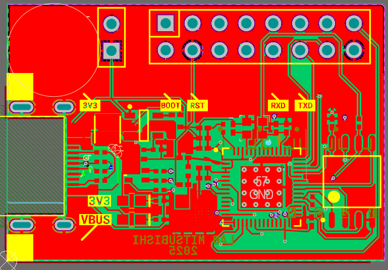 Based on this schematic diagram, the Printed Circuit Board (PCB) for the central control board of the smart LED display management and monitoring system is obtained, as shown in the Figure 4 to Figure 5. The ESP32-based central control board acts as an embedded IoT station node, performing low-level control, sensor data collection, I/O port management. This ESP32-based central control board communicates with Jetson nano via UART and/or MQTT; it integrates closely with Jetson nano – acting as an edge AI device – performing AI inference (Laboratory In-Out people counting), processing high-level logic, and deciding on appropriate LED display content. This creates a comprehensive, scalable, and reliable system architecture with clearly separated functions and low investment costs.
