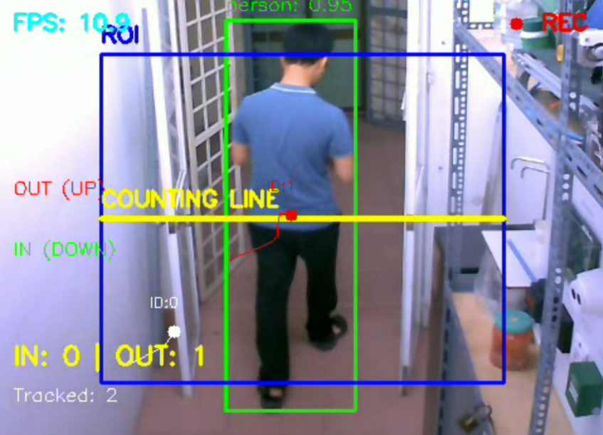 Experimental results with the proposed algorithm demonstrate fast and accurate human detection, even when multiple individuals appear simultaneously. It accurately tracks individual movement across frames, assigns unique IDs to each object, and avoids duplicate counting when individuals move slowly or stand still. This ensures the system maintains high accuracy, achieving over 90%. Errors primarily occur when individuals occlude each other or remain stationary within the counting corridor for extended periods. The use of a finite-thickness corridor and minimum displacement conditions helps eliminate false fluctuations caused by image jitter. Tracking techniques with re-identification (re-ID) reduce ID switching during short occlusions; for long occlusions, selecting a downward-angled camera position and a sufficiently wide ROI are decisive factors. The mechanism of scheduled recalibration and manual confirmation helps eliminate accumulated drift during long-term operation without affecting the real-time experience. This indicates that the proposed algorithm/ program meets the practical requirements for the laboratory management and monitoring.