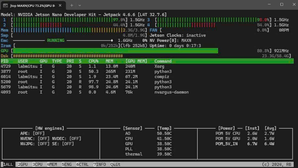Figure 16. Jtop – Jetson nano system load during inference