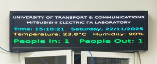 Article History: Received 09 November 2025 Revised 18 January 2026 Accepted 27 February 2026 | Smart LED display systems are widely used to provide useful information to users, ranging from simple LED screens to complex screens management and monitoring systems involving a large number of diverse devices, capable of integrating modern technologies. This research focuses on developing a smart LED display management and monitoring system for a laboratory using AI-IoT technologies, which combines deep learning, computer vision, edge computing, embedded system, IoT Communication (MQTT), and web-based management. The goal is to provide convenience, efficiency, and flexibility for users and managers, enabling easy remote information updates and real-time display on LED screens, while simultaneously automatically monitoring and accurately counting the number of people entering and leaving the laboratory. The development of the system includes designing an ESP32-based central LED control board, selecting the P2.5 LED modules, the jetson nano, the Logitech C505e camera, suitable for low-cost educational research. Subsequently, the article introduces the image processing algorithm for counting people based on YOLOv7 TensorRT inference and develops the web management interface based on the Next.js platform, combined with data communication via MQTT protocol. This research was then experimentally implemented at the Mitsubishi FA Laboratory at the university of transport and communications (UTC). The experimental results showed that the Web interface features a grid layout divided into three functional groups, allowing for display content configuration, graphical visualization, clear status display. It provides networked link-tags for updating date/time, temperature/humidity, and In/Out people counts in real-time on both the Web and the LED screen via MQTT/ WebSocket protocols. The experimental results also indicated that the proposed algorithm for counting people In/Out the laboratory achieves high accuracy, over 90%, under normal, stable lighting conditions. This confirms that the proposed smart LED display system operates efficiently, stably, and reliably, and suitable for promoting the digital management of laboratories at a low investment cost. | |
