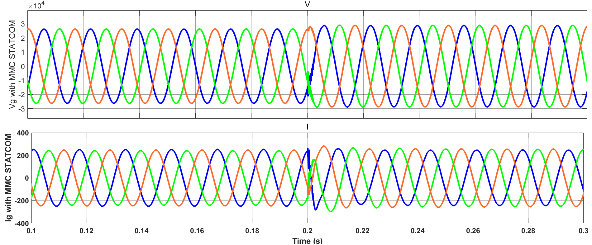 Initially, the reactive power command of the MMC-STATCOM is set at −7 MVAr, at which the STATCOM operates in the inductive mode. At time instant 0.2 s,