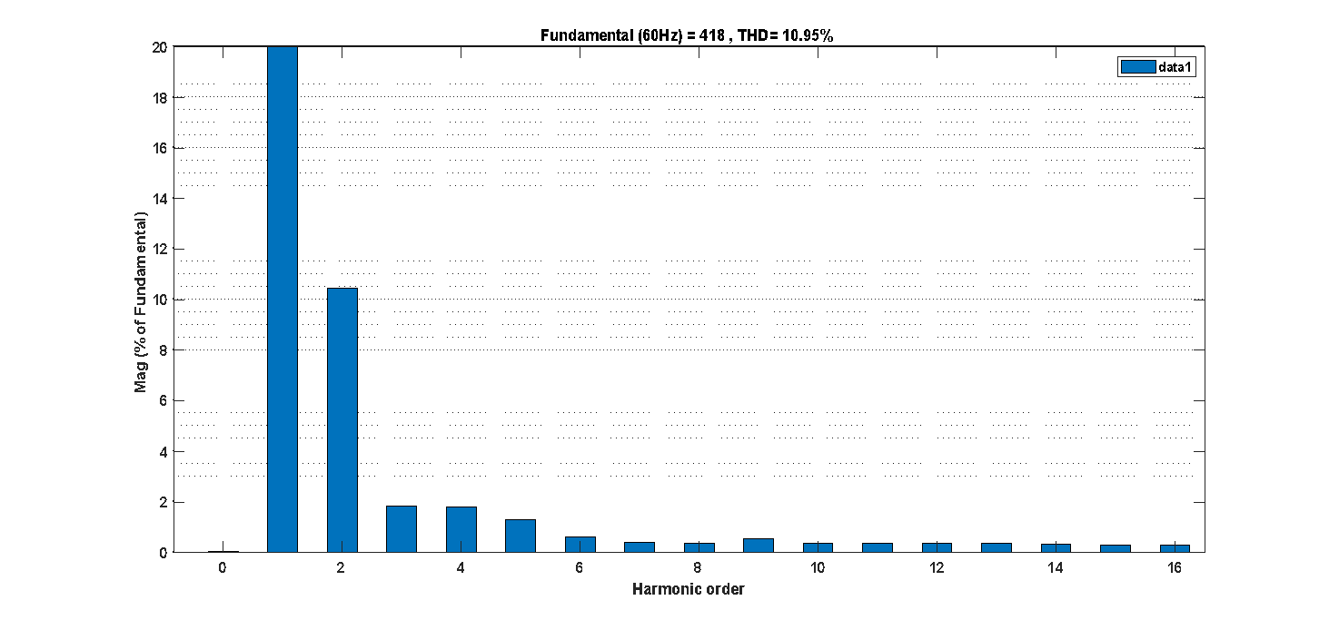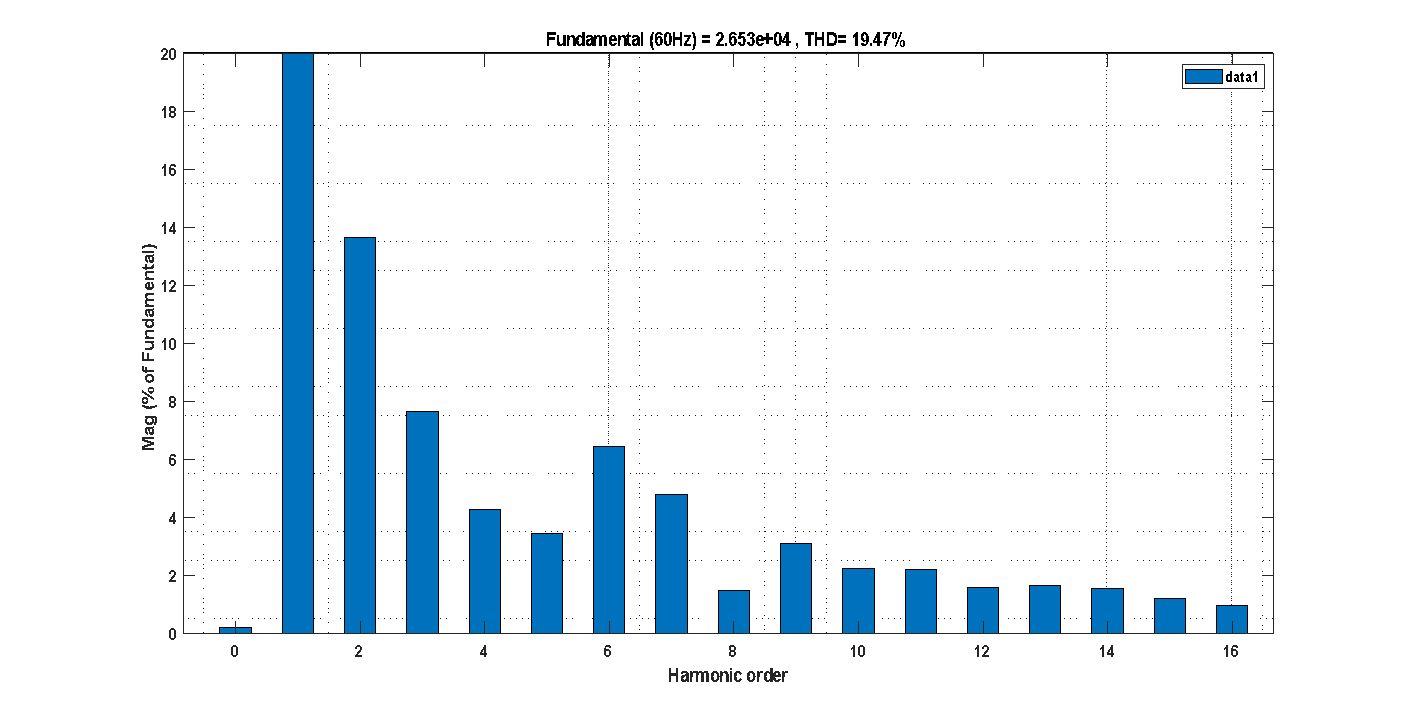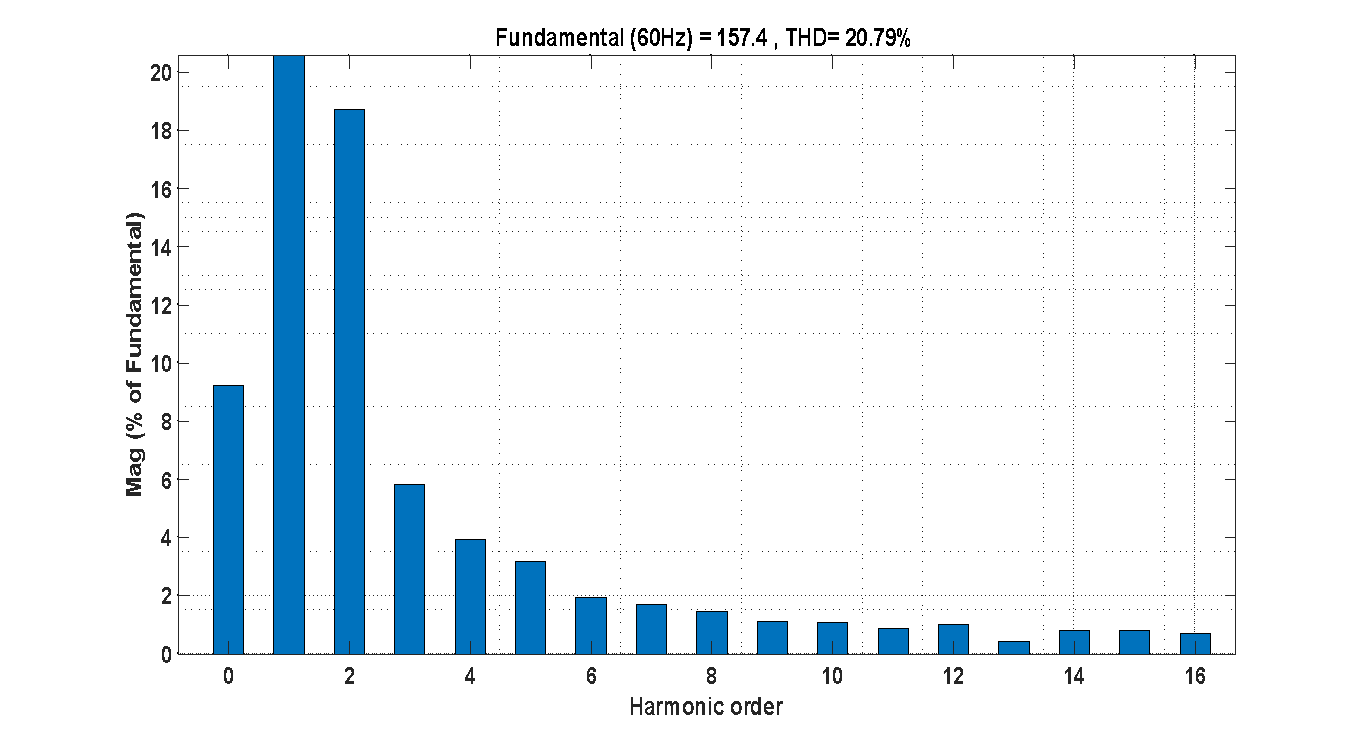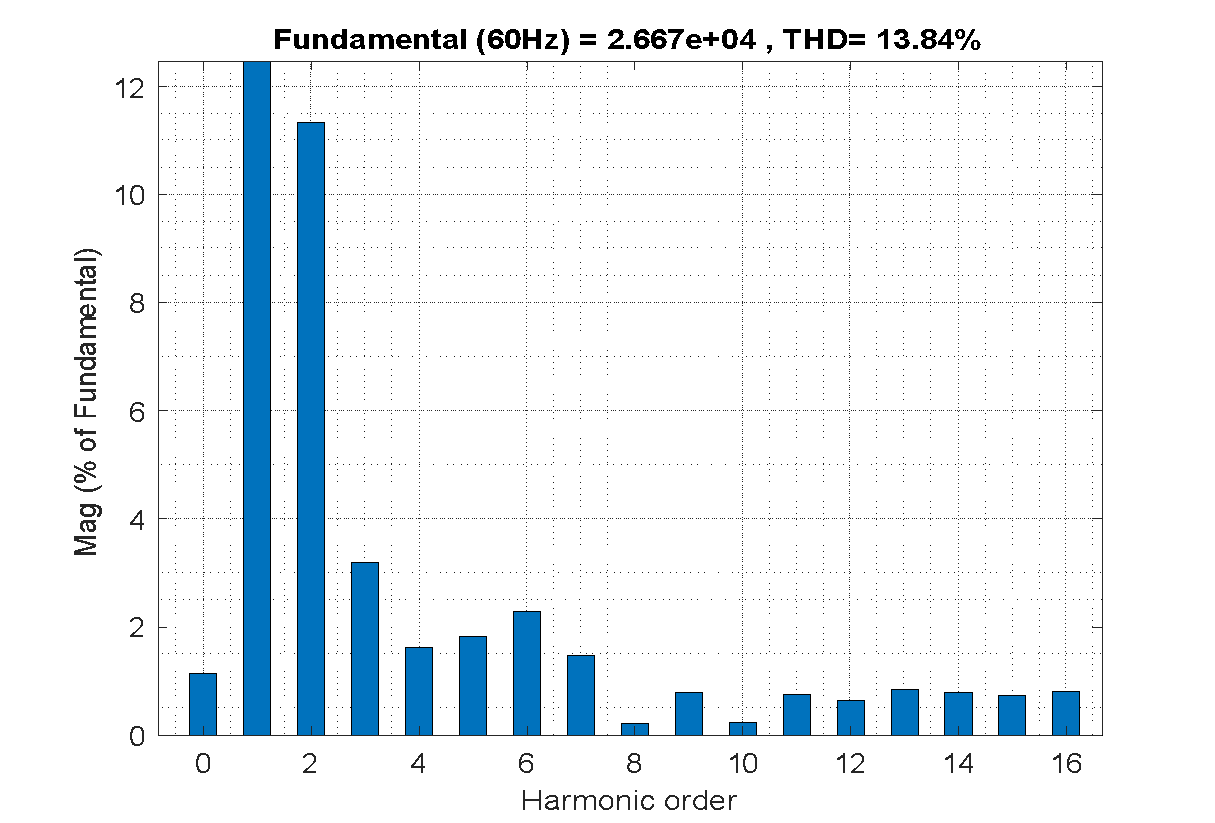 Figure 16. THD analysis of the grid current using PI controller
