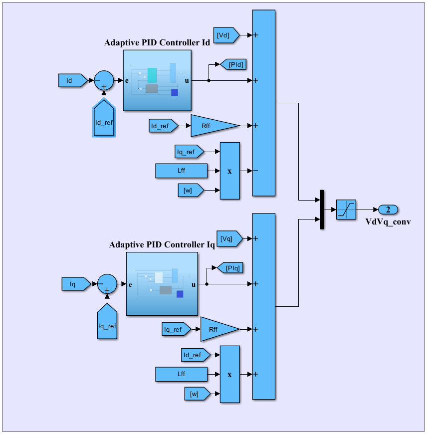 components are controlled separately by an adaptive PID control. The d-axis controller regulates