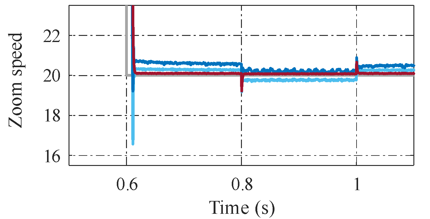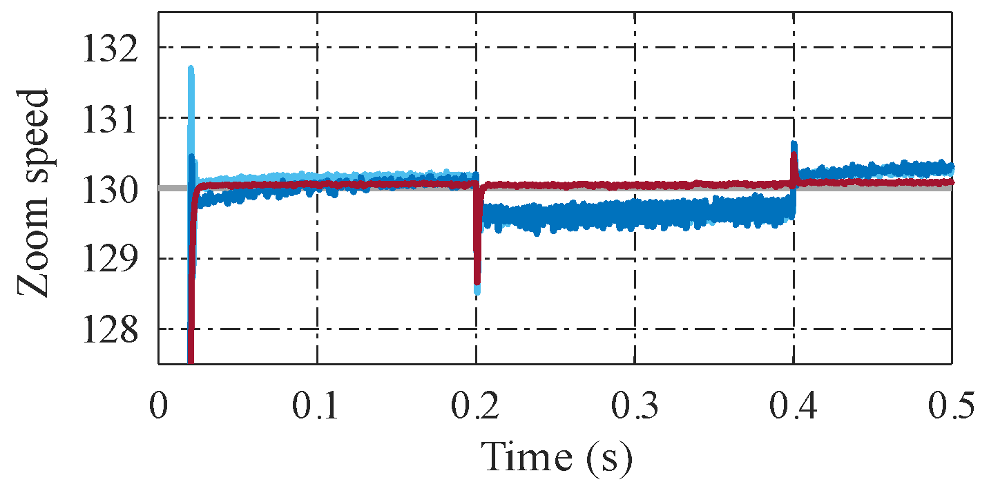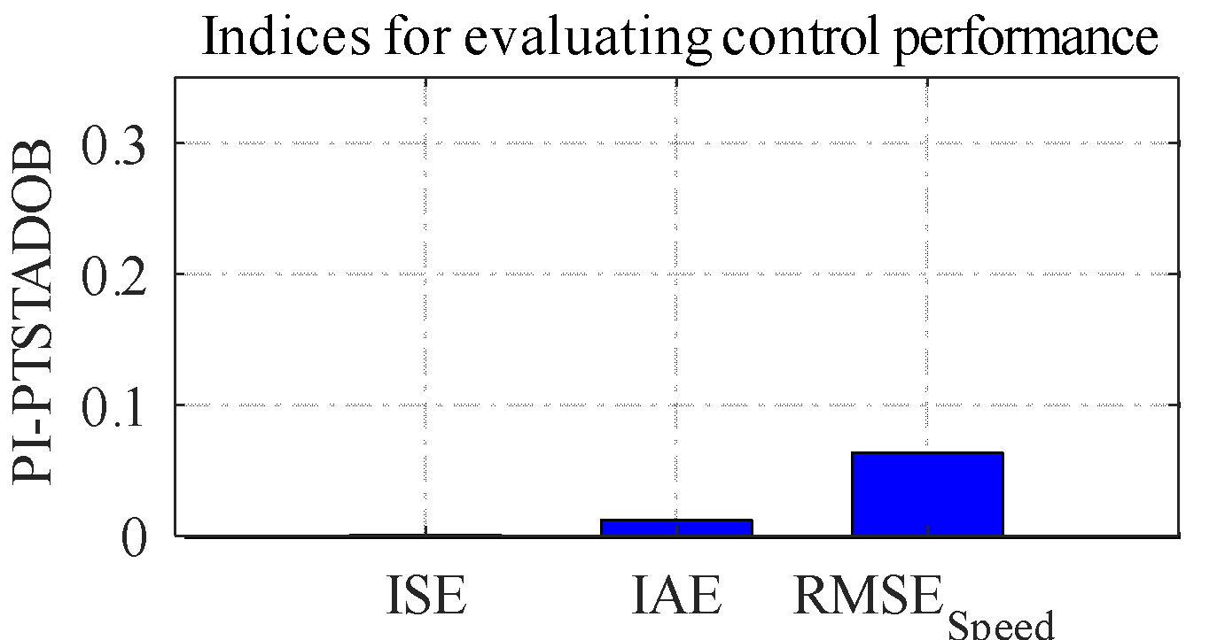 Moreover, the error performance indices demonstrate the superiority of the proposed method. The ISE decreases from 0.0213 (PI) and 0.0083 (PI–STA) to 0.00082, representing reductions of approximately 96% and 90%, respectively. Similarly, the IAE is reduced to 0.0124, confirming improved disturbance rejection and faster attenuation of tracking errors. Most notably, the speed RMSE drops dramatically to 0.0641, which corresponds to an 80.4% reduction relative to PI and a 68.6% reduction relative to PI–STA. This significant reduction in steady-state fluctuation highlights the effectiveness of the predefined-time disturbance observer in compensating load variations and modelling uncertainties.