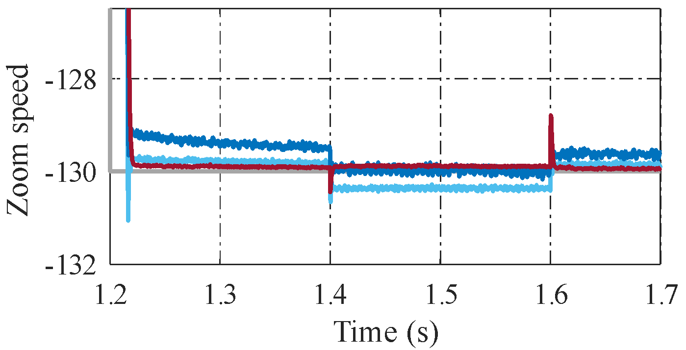 In contrast, the proposed PI–PTSTADOB controller achieves a substantially improved dynamic response. The predefined-time sliding manifold combined with time-varying super-twisting gains ensures rapid convergence with enhanced damping characteristics. As shown in Table 2, the overshoot is reduced to only 0.0131, corresponding to approximately 98.4% and 89.2% reductions compared with PI and PI–STA, respectively. Unlike conventional STA approaches, the predefined-time gain scheduling enforces strong convergence near the sliding surface while avoiding excessive oscillatory behavior.