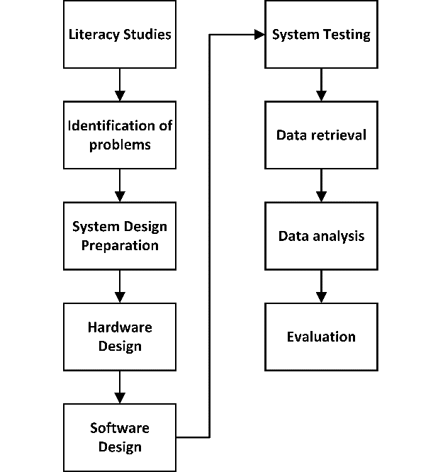 There are several stages of research conducted to create a system that has been designed. After conducting literacy studies and identifying problems, then carry out the preparatory process for designing the system. At this stage, all the things needed in the research are prepared. If so, enter the hardware and software design stage. After the designed system has been made, the tool testing process is carried out. If the tool is successful, then enter the process of data collection and analysis. After all stages have been completed, an evaluation process of the research carried out is carried out. The research flowchart can be seen in Figure 4.