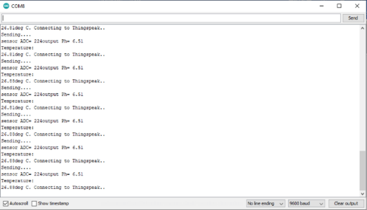 This test is carried out to ensure that the readings from the DS18B20 temperature sensor and soil pH sensor can be sent to the ThingSpeak website properly. The test results of uploading sensor data to the ThingSpeak website can be seen in Figure 6.