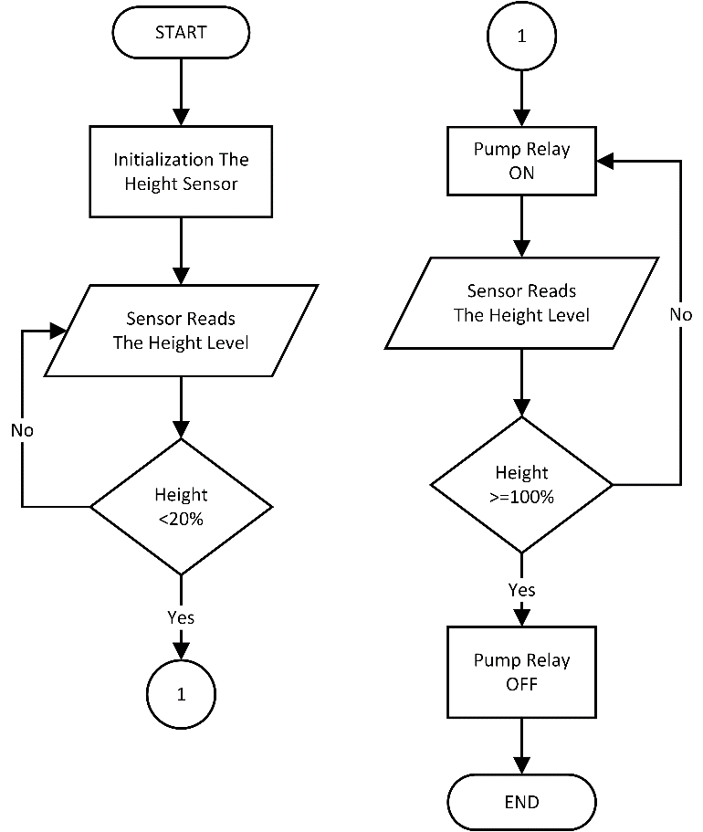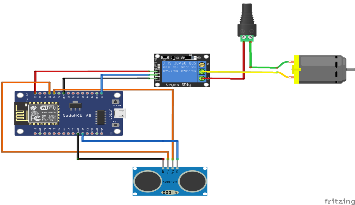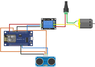 NodeMCU gets a 5V voltage source, then the HC-SR04 ultrasonic sensor gets a 3.3V voltage source from nodeMCU with the trigger connected to D3 and echo on D4. Furthermore, the relay gets a voltage of 3.3V from the nodeMCU with input pins on D0 next part of the relay, positive (+) pump 12VDC connected to the COM relay negative (-) connected with negative adapter and positive (+) adapter 12VDC which can be seen in Figure 2 [19] .