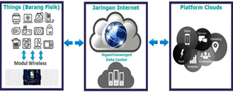 IoT is the concept of internet connectivity by exchanging information with each other with existing objects can be seen in Figure 1. IoT evolved from the convergation of MEMS (micro-electromechanical system) wireless technology and the internet [17]. IoT uses physical goods that are connected to wireless modules such as nodeMCU. Then nodeMCU connected to the internet will send data from the physical item to the cloud platform for monitoring such as Blynk, Antares, or Thing Speak [18].