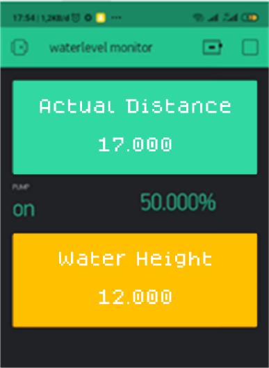 The actual distance of the sensor is the actual distance from the trigger end of the HC-SR04 sensor to the surface of the tube used. The measurement is the opposite of the water level, the farther the water level, the farther the measurement shown, the closer the water level the closer the measurement of the actual distance of the sensor. Actual distance measurements can be seen in the following Table 3.