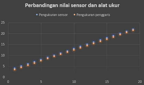 Accuracy is a condition where the level of measurement of the sensor is comparable to the measuring instrument used, in this study a measuring instrument in the form of a ruler was used. Level of accuracy using Equation (6).