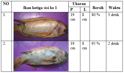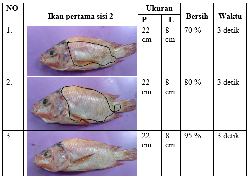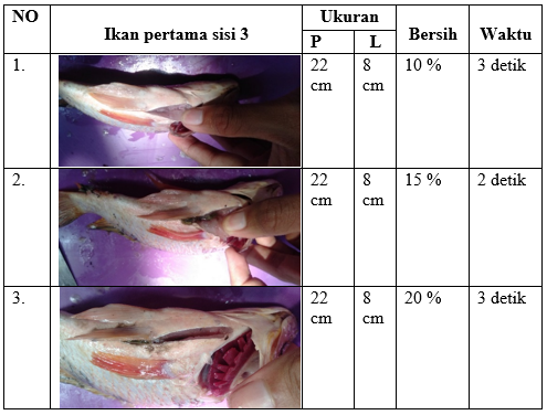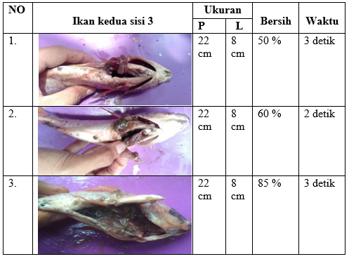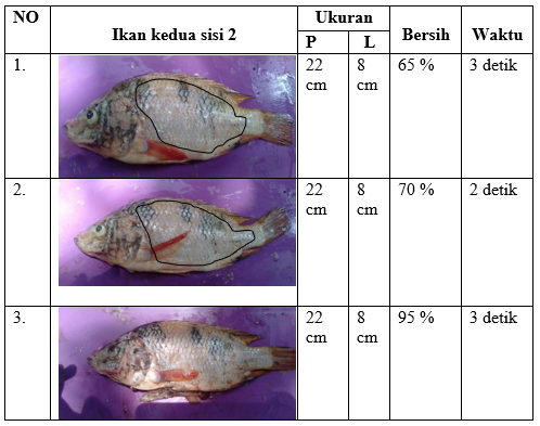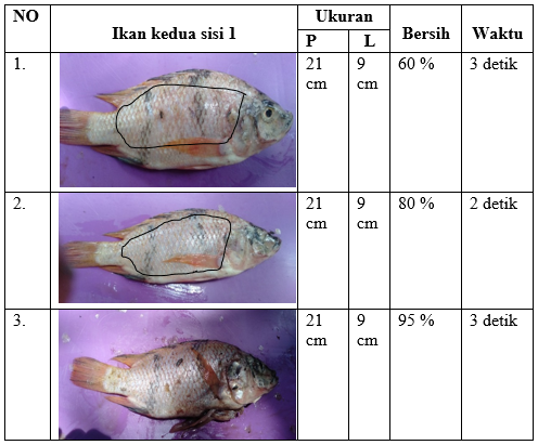 The system testing aims to determine whether the device functions properly or if there are any errors. This testing involves three samples of tilapia fish that will be cleaned of scales and dirt can be seen in Figure 7.