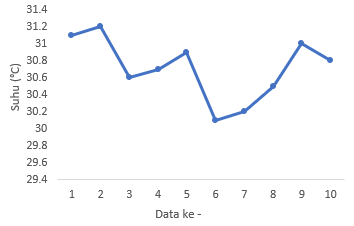 Table 5 is the result of calculating the error value of the DHT-11 sensor test. The error value is obtained from the comparison between the readings from the DHT-11 sensor and a standard measuring instrument, namely a digital thermometer and an average error value of 1.44% is obtained. The test results show that the interval of the test results is not the same as the interval of the calculation results, with the error rate ranging from 0.63% to 1.94%. Based on the DHT-11 sensor datasheet, the temperature measurement limit is 0-50 ° C with a large error of ± 2 ° C.