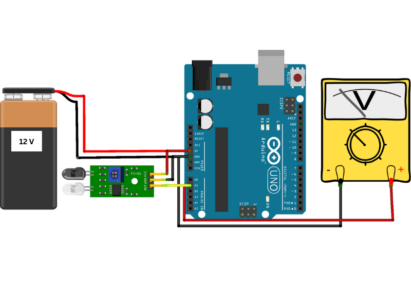 The test is carried out on an infrared sensor, namely if the object passes through the sensor, it will read logic “1” which indicates the presence of the object and becomes a trigger servo barrier to return to the initial position. Here are the test points to be carried out as shown in Figure 6. The results showed that the sensor was running according to specifications with a legible working voltage of 4.62 V when the logical condition was “0” and 0.32 V when the logical condition was “1” which can be seen in Table 2.