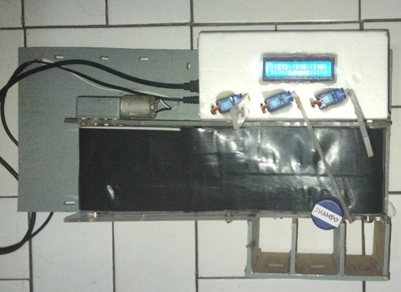 The prototype of an automatic sorting tool for cosmetic items has been designed with results such as Figure 5. This test is run to determine the performance of the system that is designed to work as planned.