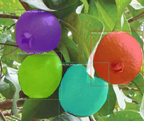 The performance evaluation is conducted by testing the trained model to detect and segment Bangkok guava, red breadfruit guava, crystal guava, and red brittle guava on 200 images with 50 images for each type of guava. The test data mainly consists of guava captured in the wild or still hanging on the tree. Table 2 shows the classification, detection, and segmentation result from test data.