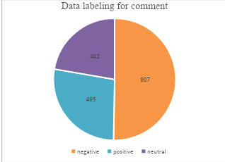 With a lot of data taken as many as 1804 data comments that go through a labeling process are given guidelines or labels containing numbers that will make labeling easier. This figure is a label containing negative information for number 1, neutral for number 0 and positive for number 2. This resulted in 907 negative sentiments, 402 neutral sentiments and 402 positive sentiments regarding the increase in fuel prices. Process Cleaning used for cleaning unnecessary words or punctuation from comment data taken from YouTube. Then the results of labeling the data are shown in Table 3. This research contains comments that are negative, neutral and positive as shown in Figure 5.