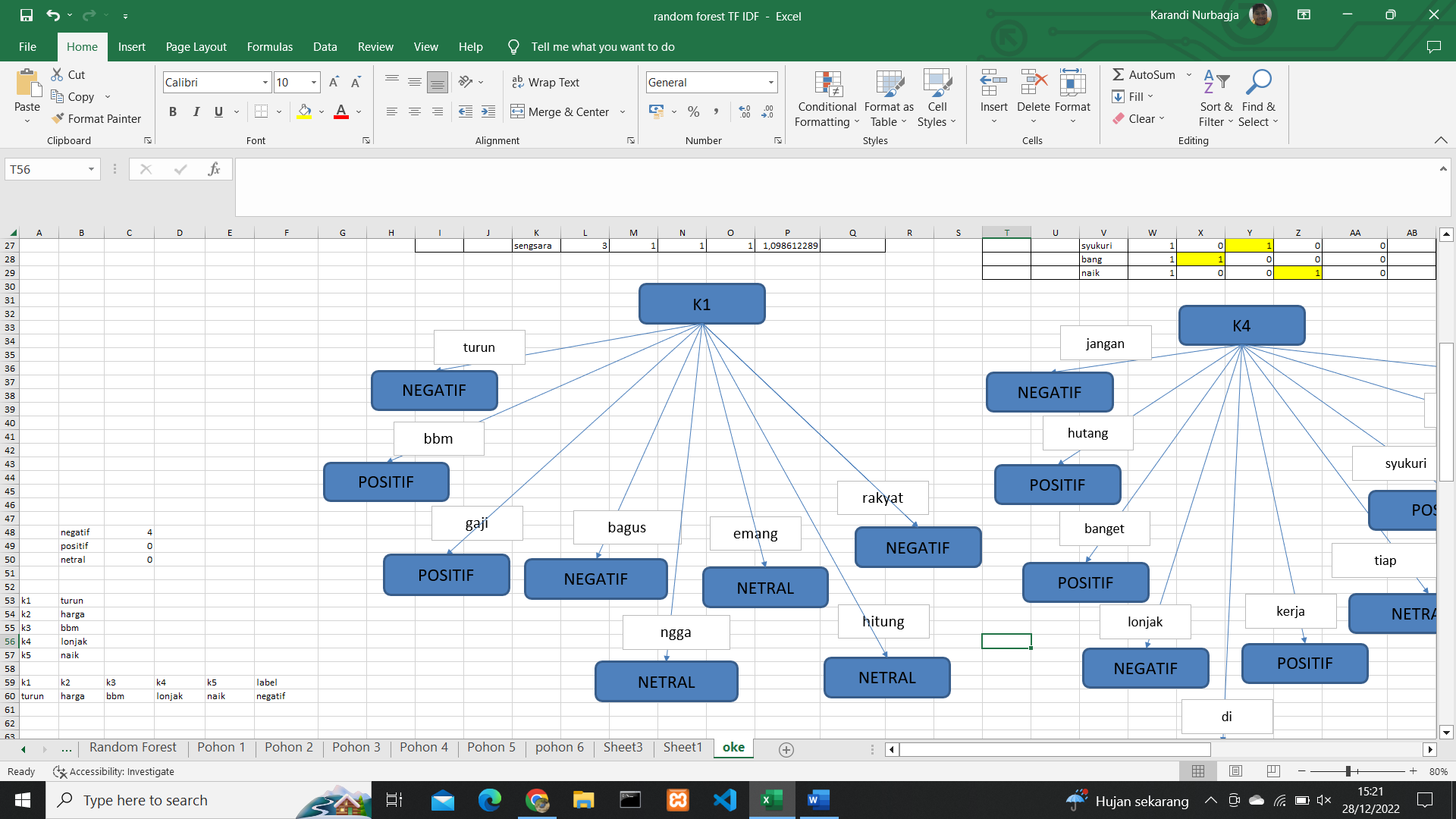 After the tree is formed, the testing data is ready to be examined by checking each word in the decision tree output shown in Table 6.