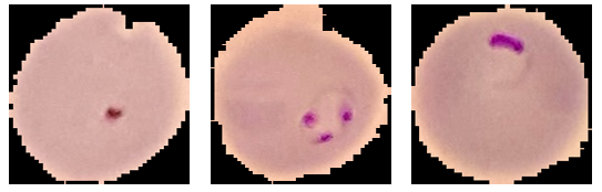Figure 3. Microscope images of red blood cells infected and uninfected with malaria parasites