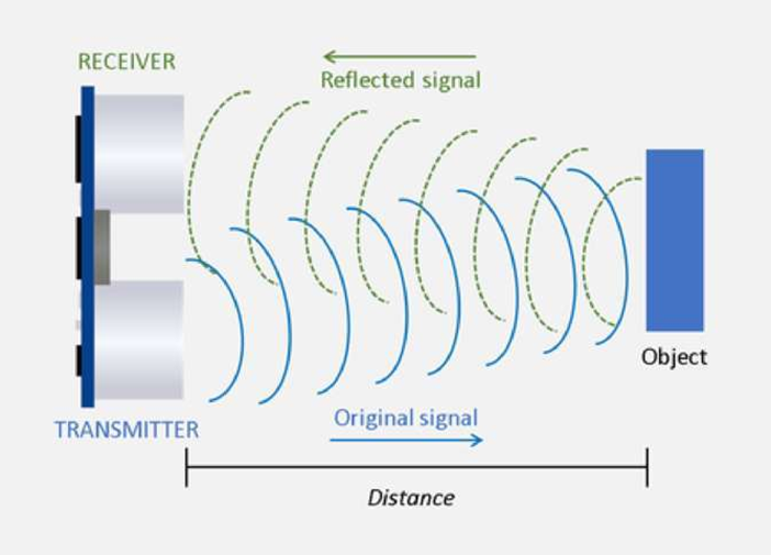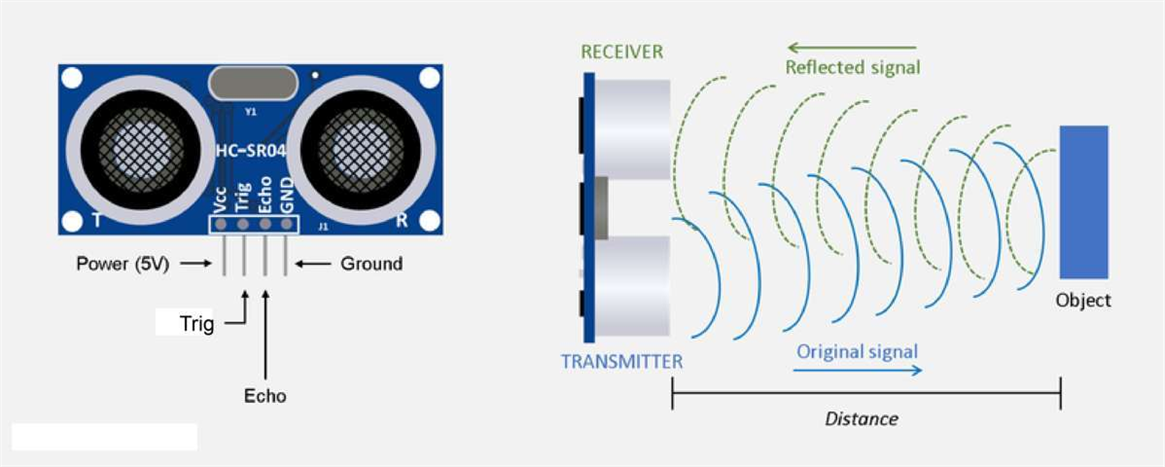 Ultrasonic sensor is based on the principle of sound wave reflection to get the distance of an object with a certain frequency. Ultrasonic waves are sound waves that have a high frequency, above 20,000 Hz (20 kHz). Ultrasonic sensors have two main components; the transmitter and the receiver which are connected to a piezoelectric crystal. An alternating voltage is applied to a metal plate to produce ultrasonic waves that are emitted into the air. If there is an object, then the ultrasonic waves will be reflected and received back by the receiver. This reflected wave produces an alternating voltage with the same frequency [24], [25]. Figure 1 shows the illustration of measurement ultrasonic sensor.