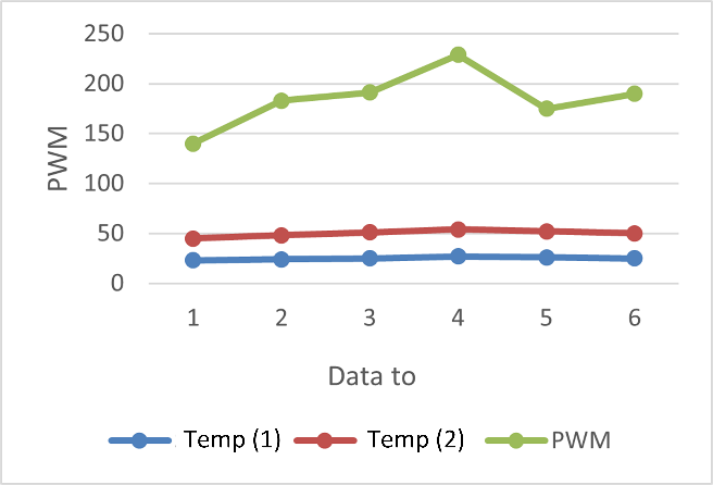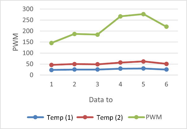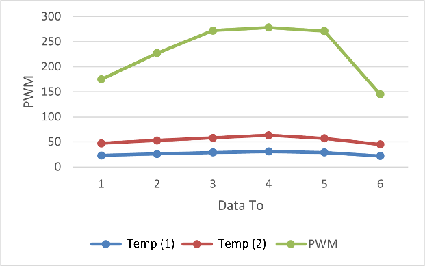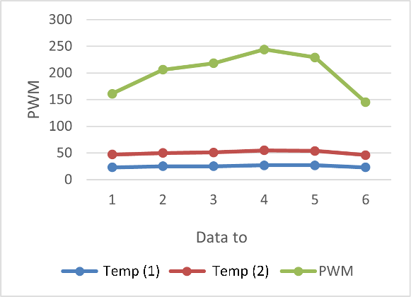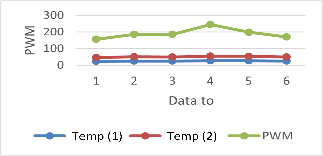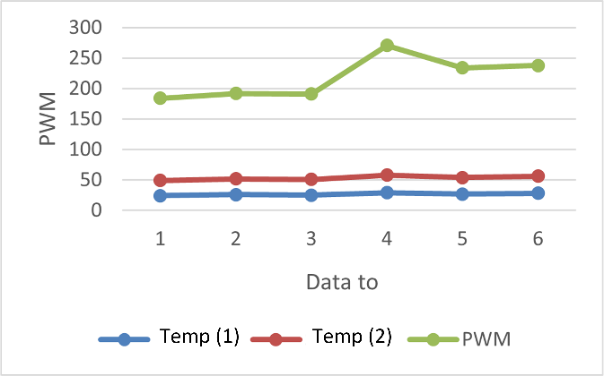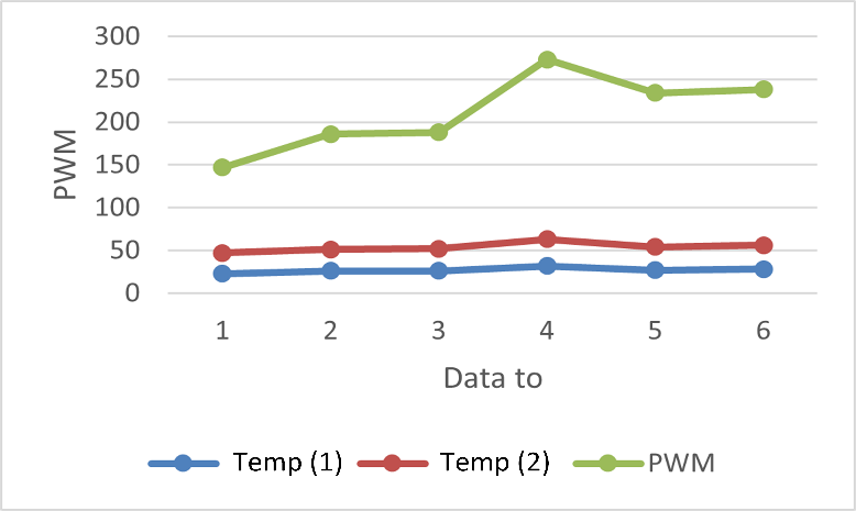 Based on the 14 test tables, the fan speed if the temperature increases, the PWM value of the fan will be higher because the temperature value affects the PWM speed value of the fan itself. Up to 31°C the PWM value is almost close to the maximum value of 255 rpm. From the data taken, the PWM values are different. There are 3 temperature categories, namely cold, ideal and hot, while there are also 3 PWM categories, namely slow, fast and medium. These results will be obtained from the stages of the Fuzzy method.