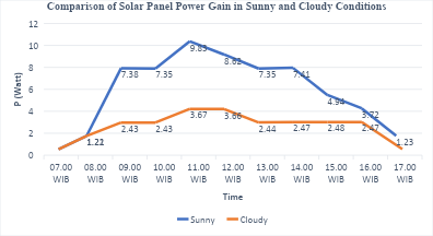 Figure 8. Comparison chart of power obtained by solar panels in sunny and cloudy conditions
