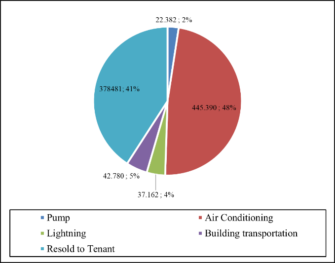 The electricity in the building is used to provide lighting and equipment to serve public facilities. This electricity is paid by building tenants as one of the service charge components every month. The results are given in Table 4.